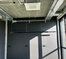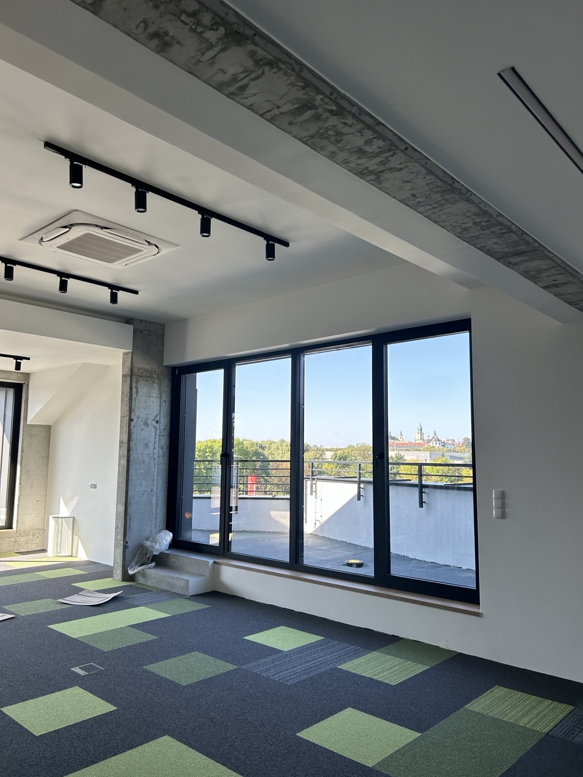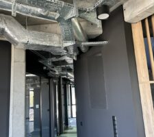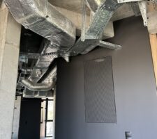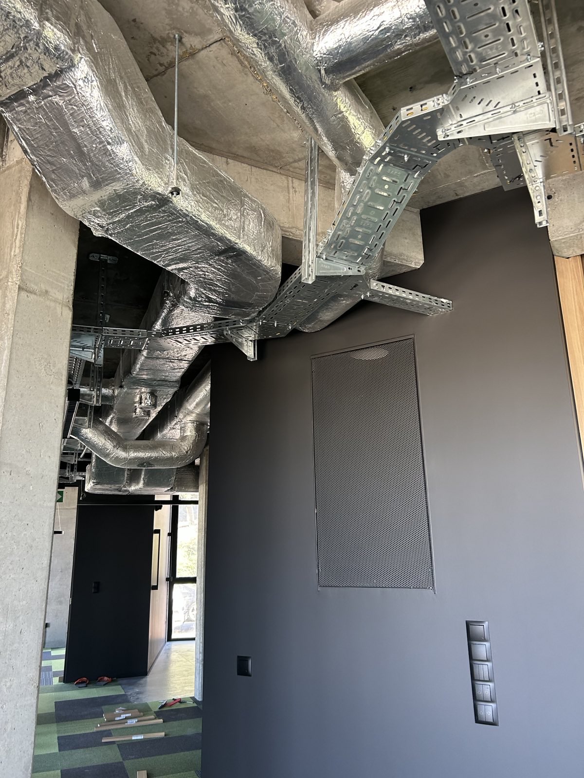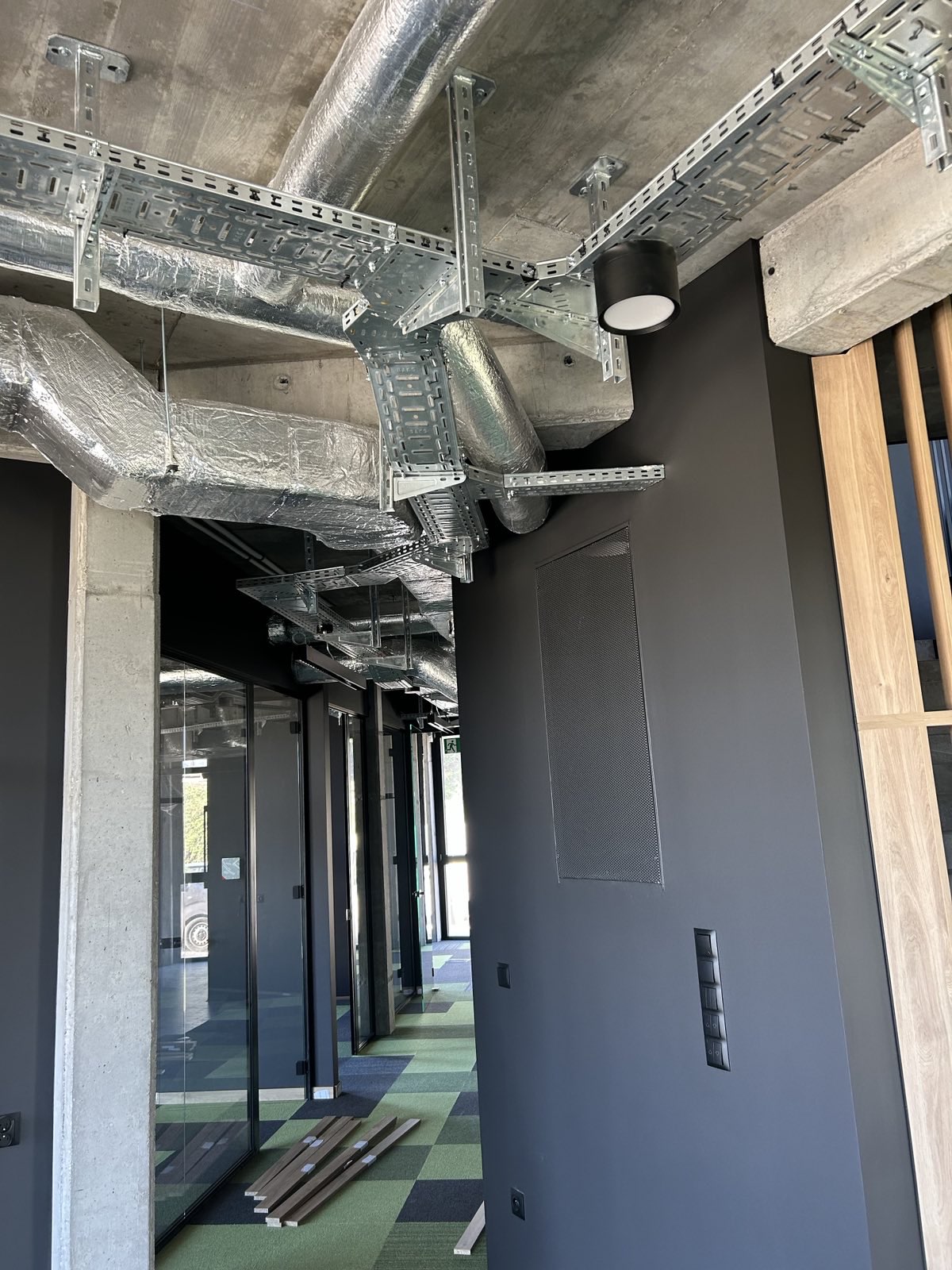 Obiekt zrealizowany w stylu loftowym. Co to oznacza dla instalatora? Instalacje będą odkryte i widoczne na suficie. W obiekcie zastosowano niecodzienne rozwiązanie nawiewników wyporowych posadowionych na posadzce i w ścianie, co również jest ukazane na zdjęciach. Zamontowane wyrzutnie dachowe wykonaliśmy na specjalne życzenie Inwestora. Jest to nasz nowatorski projekt łączący nowoczesny design z funkcjonalnością.